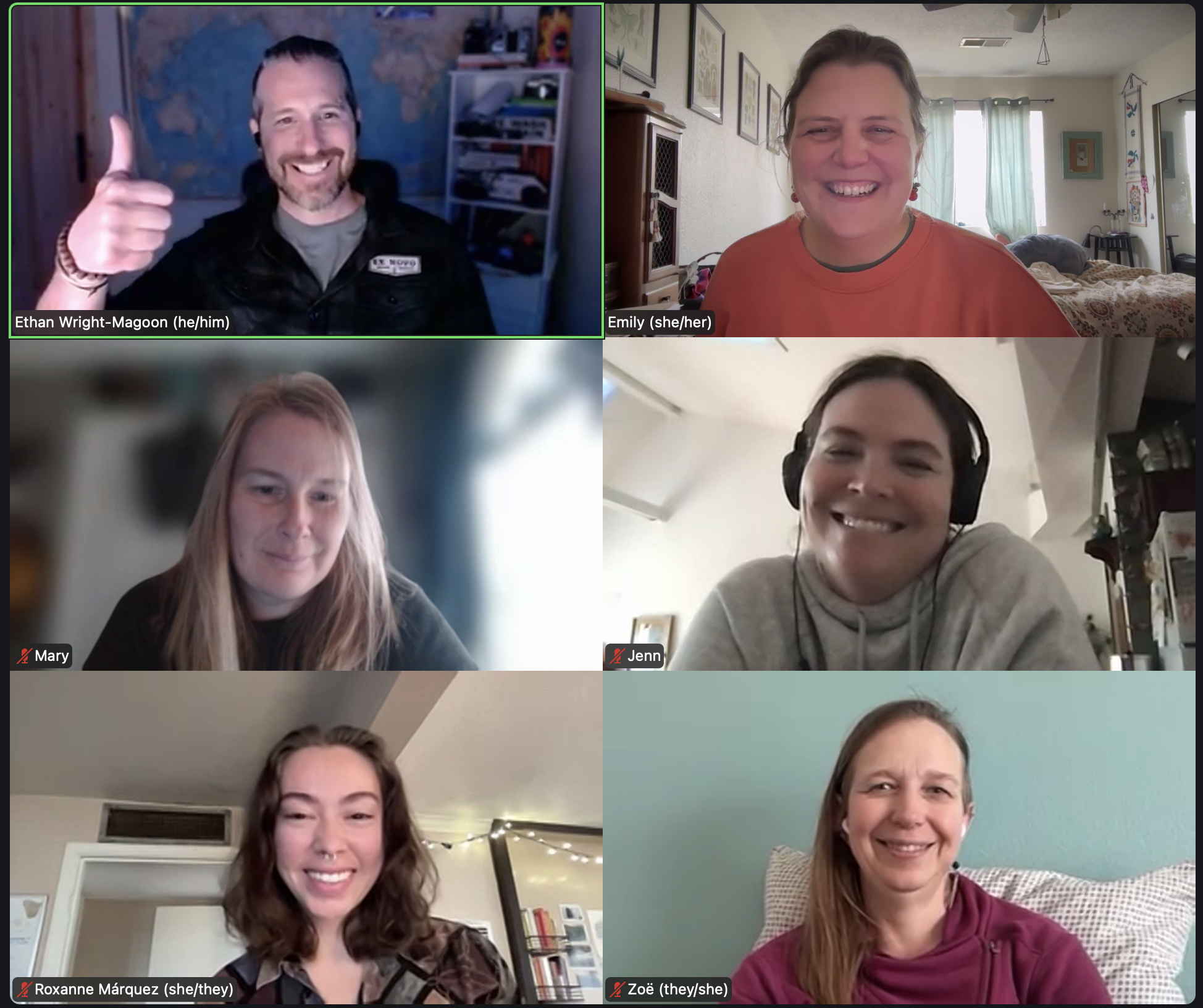 A weekly Covey Facilitators meeting. Planning, laughing, listening, and building something that matters. (From top left to right: Ethan, Emily, Mary, Jenn, Roxanne, and Zoë)